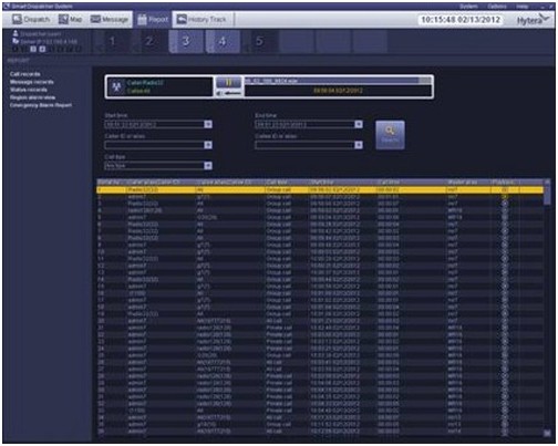SmartDispatch提供通話記錄查詢、消息記錄查詢、上下線查詢、越界報警查詢和緊急報警查詢。用戶可根據時間段、ID號等關鍵字查詢相關記錄信息。
